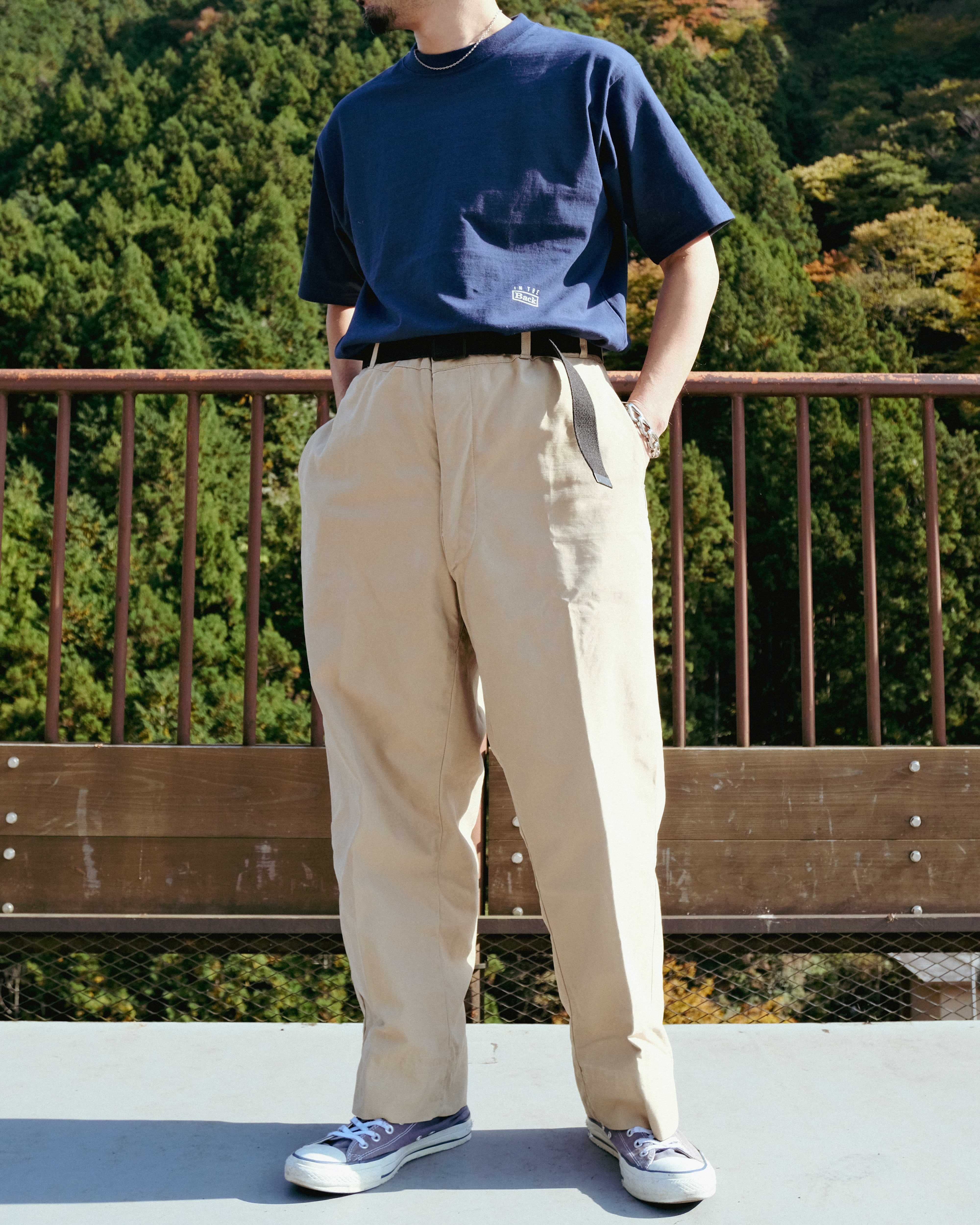 厚みはあるが生地のシャリ感や雰囲気、オーバーすぎないサイズ感で上品な着こなしができるTシャツです。